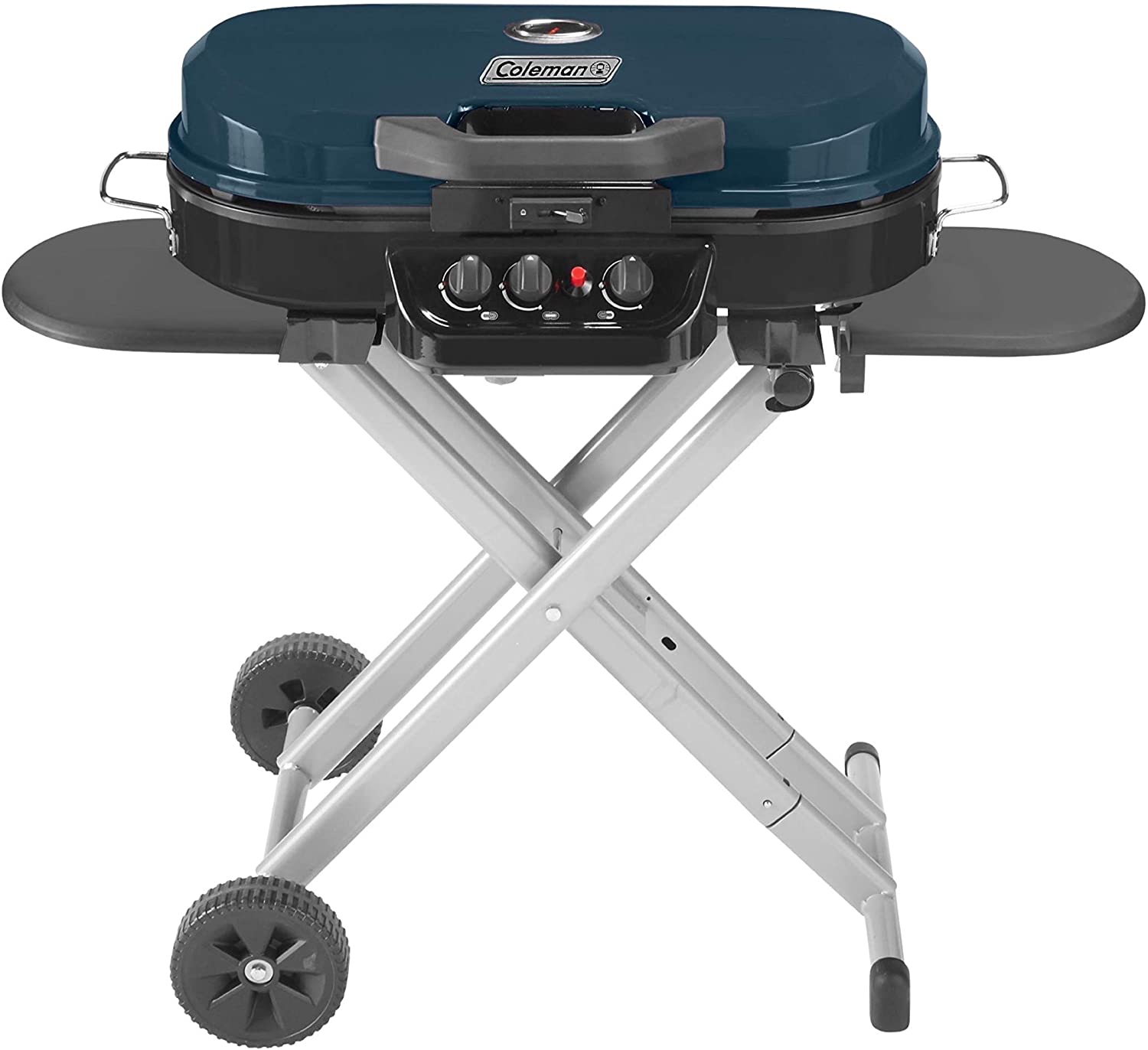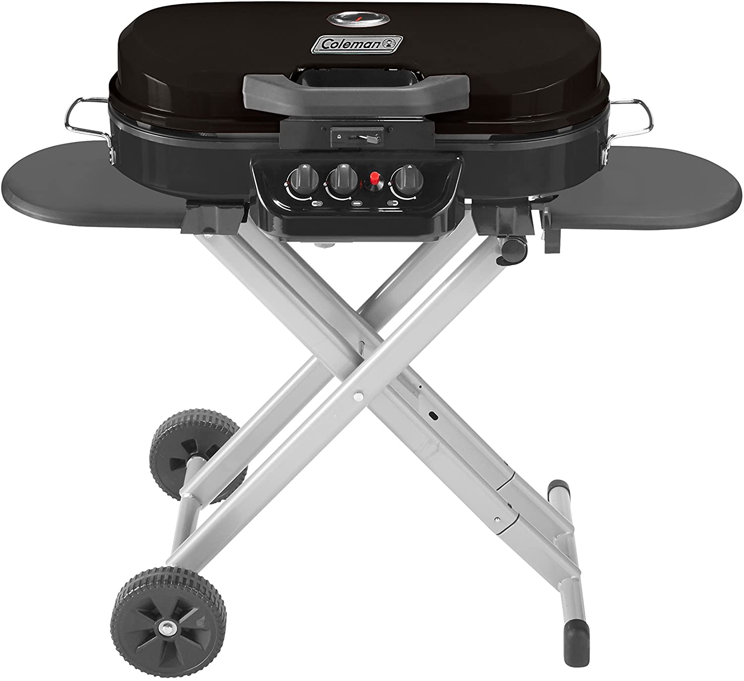 The Coleman RoadTrip 285 Portable Stand-Up Propane Grill features sturdy quick-fold legs and 2 wheels for hassle-free setup. takedown. and transport so that taking your grill on a camping trip or to a tailgate is easy. Push the Instastart ignition button for matchless lighting. then select your heat with the enhanced temperature control of 3 independently adjustable burners (outer left. inner. outer right). With a range of grilling power from 3.250 to 20.000 BTUs and 285 sq. in. of cast iron grill grates coated in porcelain. you'll wow your friends and family with an array of perfectly cooked meats. seafood. or veggies every time. If you're looking for more meal options. the Swaptop interchangeable cooktops let you switch the grill grates with a griddle or stove grate (both sold separately). With two sliding side tables to keep utensils and sauces handy. cooking with this grill is just as convenient as traveling with it. Bonus: The RoadTrip 285 Portable Stand-Up Grill can be stored upright (to fit in tight spaces) until your next cookout. Uses a 1-pound propane cylinder (sold separately).